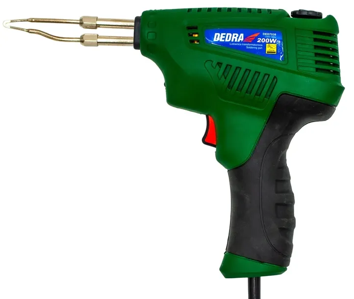 - Lutownica transformatorowa DEDRA DED7538 o mocy 200W przeznaczona jest do lutowania miękkiego za pomocą spoiwa lutowniczego (np. popularnej cyny).