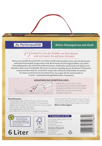 Żwirek zbrylający się Dein Bestes aktiv dla kotów składa się z drobnych białych granulek bentonitowych z węglem aktywnym i świeżym zapachem. W kontakcie z cieczą natychmiast tworzą się zbite bryłki, które można łatwo usunąć. Dodatkowo powstaje dyskretny, aloesowy, świeży zapach. Żwirek jest bardzo wydajny, ponieważ wymieniane są tylko małe bryłki. Dodatkowo czarne granulki węgla aktywnego zapewniają jeszcze lepszą ochronę przed nieprzyjemnymi zapachami.