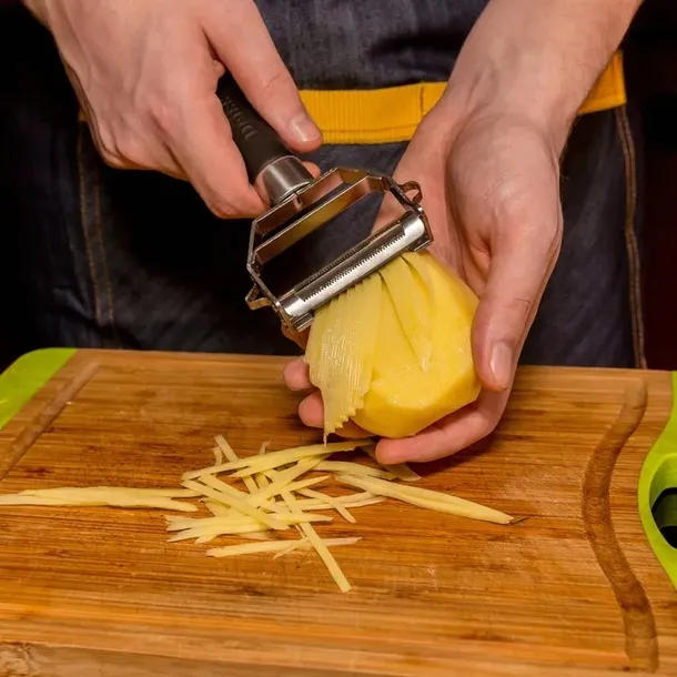 Dzięki tej obieraczce możesz zaimponować swoim bliskim nowymi, wykwintnymi potrawami. Dekorowanie dań, przygotowywanie makaronu z warzyw, krojenie sałatek, frytek i serów - to wszystko i więcej jest teraz w zasięgu ręki. Zaskocz swoich gości kreatywnością i różnorodnością potraw, którą zyskasz dzięki temu wielozadaniowemu gadżetowi.