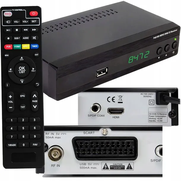 ⭐⭐DEKODER DVB-T2 FULL HD TV NAZIEMNEJ HEVC H.265 TUNER HDMI SCART USB PILOT⭐⭐