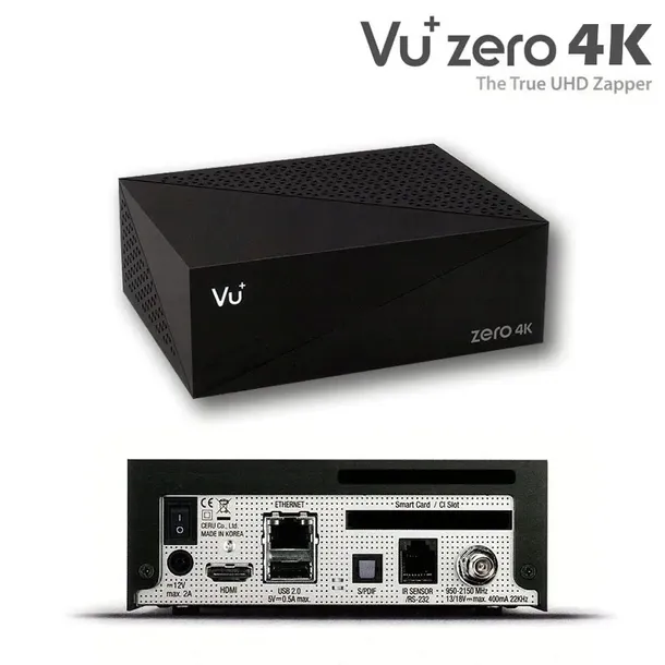 Vu+ ZERO 4K to nowy model odbiornika 4K, następca Vu+ ZERO, koreańskiej produkcji producenta Marusys. Charakteryzuje się bardzo wydajnym procesorem o szybkości 7000 DMIPS, a także obsługą DVB-S2X (alternatywnie DVB-T2/C). Na jego pokładzie znajduje się 4 GB pamięci flash i 2 GB pamięci RAM. Vu+ ZERO 4K wyposażono w czytnik kart i gniazdo CI. Wspiera technologie wyświetlania obrazu HDR10/HLG/PLM. Producent reklamuje to urządzenie jako najmniejszy odbiornik 4K na oprogramowaniu E2.