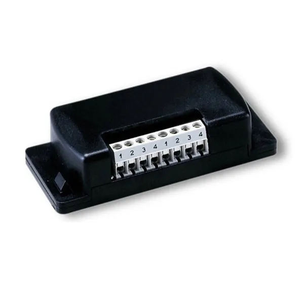 Umożliwia podłączenie do 4 klawiatur kodowych, lub 1 czytnika, a jego pamięć to 255 kombinacji lub kart. Zasilanie 24V lub 12V