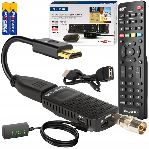 Ten kompaktowy dekoder tuner TV DVB-T2 HEVC H.265 BLOW 7000FHD MINI STICK wyróżnia się zaawansowaną technologią, która zapewnia stabilny odbiór wszystkich ogólnodostępnych kanałów, takich jak Polsat News, TV Trwam i wiele innych. Z wsparciem dla standardów DVB-T2, DVB-C, HEVC H.265 oraz H.264, urządzenie gwarantuje płynne transmisje MUX1, MUX2, MUX3, MUX4, MUX6 i MUX8 bez zakłóceń, nawet w wymagających warunkach.