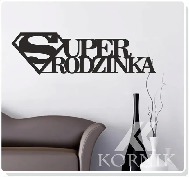 Dekoracyjny napis ścienny „Super rodzinka”.