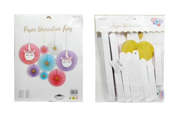 Zestaw 8 kolorowych rozet w różnych rozmiarach idealnie sprawdzi się jako ozdoba pomieszczenia przed imprezą urodzinową. Produkt zapakowany w przezroczysty worek.