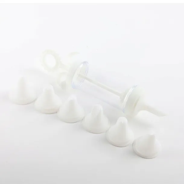 Wyposażony w 6 różnych końcówek, umożliwia tworzenie zróżnicowanych wzorów – rozetek, fal, gwiazdek, pasków oraz innych dekoracyjnych kształtów. Dzięki wymiennym nasadkom możesz szybko zmieniać efekt bez konieczności używania kilku osobnych rękawów cukierniczych.