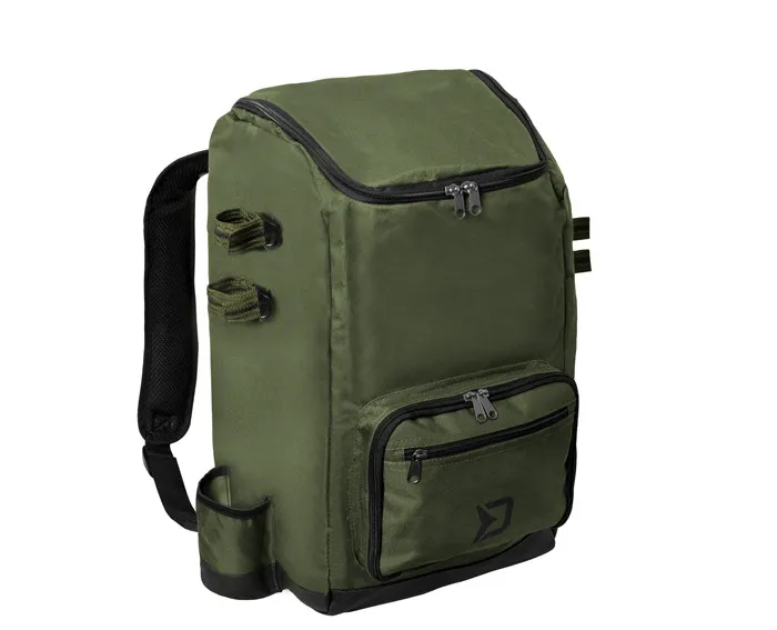 Doskonały towarzysz podczas wędkowania. Tak można scharakteryzować plecak Delphin CLASSA. Całość wykonana z wysokiej jakości tkaniny w kolorze zielonym. W dolnej części plecaka jest gumowana wodoodporna warstwa, dzięki której bez obaw można go zostawić w trawie pokrytej rosą. CLASSA ma dużą wewnętrzną przestrzeń, do której jest łatwy dostęp przez dużą pokrywę, zamykaną za pomocą praktycznego i wysokiej jakości zamka błyskawicznego. Z przodu plecaka znajduje się duża kieszeń, na której jest mniejsza kieszeń zapinana na zamek. Możesz w nim wygodnie przechowywać ważne przedmioty, takie jak dokumenty, portfel czy telefon komórkowy. Po obu stronach plecaka znajdują się otwarte kieszenie z paskami. Nadają się na przykład do trzymania dłuższych rzeczy, takich jak podpórki i niektóre rodzaje wędek. Otwarta kieszeń w tym przypadku może służyć jako uchwyt dla tych przedmiotów. Można je również użyć do noszenia termosu lub butelki z wodą. Niezaprzeczalnym atutem tego plecaka są wysokiej jakości szelki z wypełnieniem z pianki, co zmniejsza nacisk na ramiona podczas noszenia w pełni załadowanego plecaka. W górnej części są połączone, co tworzy wygodny uchwyt do noszenia plecaka w dłoni.