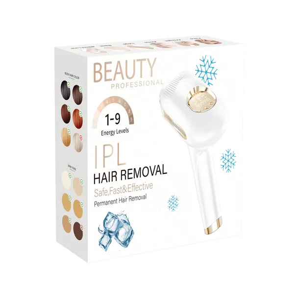 Depilator IPL oferuje aż 9 poziomów intensywności światła, dzięki czemu możesz idealnie dobrać moc impulsu do koloru włosów, odcienia skóry oraz wrażliwości danej partii ciała.