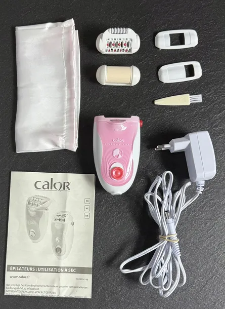 - Cicha technologia: dzięki podwójnej hermetycznej obudowie (do 2 razy cichsza*); *Średnio niż w przypadku depilatora Calor Lovely
