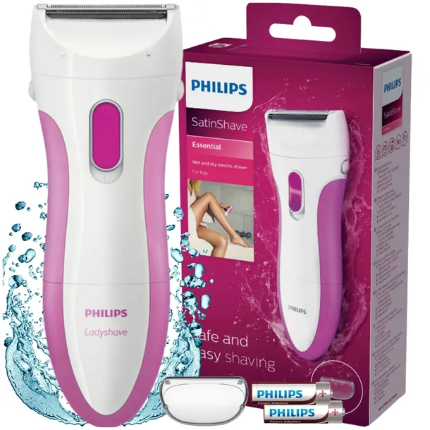 Dzięki naszej uniwersalnej elektrycznej golarce Philips SatinShave Essential możesz szybko, łatwo i bezpiecznie golić całe ciało. Sekretem jest mała głowica tnąca, która szybko usuwa włosy i jednocześnie chroni skórę. Po każdym użyciu doświadcz jedwabiście gładkiej skóry. Model jest wyposażony w bezpieczny system golenia, który zapewnia optymalną ochronę skóry, a dzięki profilowanemu, ergonomicznemu uchwytowi zapewnia łatwą kontrolę. Ta elektryczna golarka jest zasilana bateriami i może być używana na mokro lub na sucho, dzięki czemu można się golić w wannie, pod prysznicem lub nad umywalką.