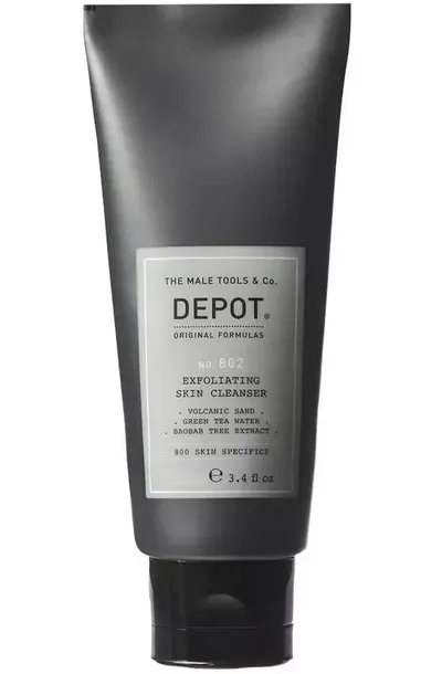 Oczyszczający peeling do twarzy Depot No. 802 zawiera skałę wulkaniczną. Kosmetyk delikatnie złuszcza martwy naskórek, detoksykuje oraz wygładza skórę, działa więc potrójnie. Regularne stosowanie preparatu sprawia, że odnowa komórek przebiega szybciej, a skóra jest zrewitalizowana i promienna. Pył wulkaniczny delikatnie i dogłębnie oczyszcza mechanicznie, zapewnia regenerację skóry i poprawia mikrokrążenie poprzez delikatny masaż. Dodatkowo ekstrakty z baobabu działają przeciwstarzeniowo.