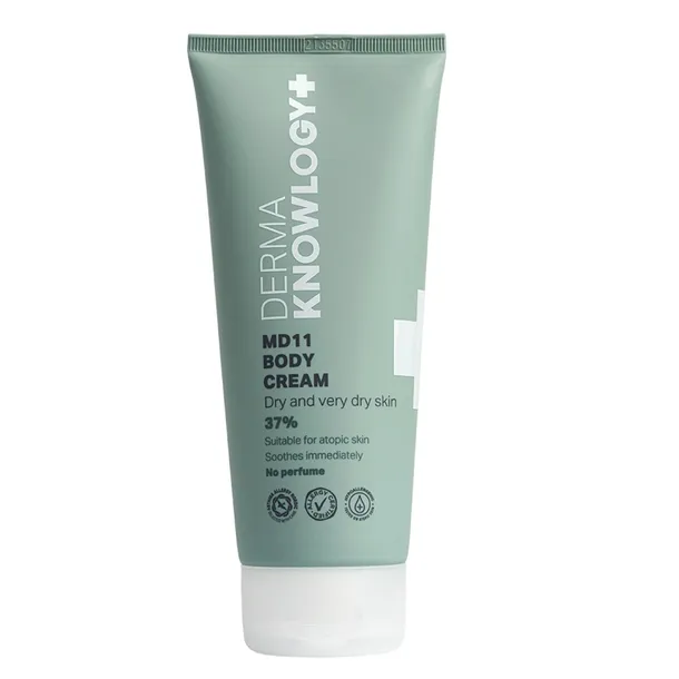 Krem do ciała DermaKnowlogy MD11 charakteryzuje się wysoką zawartością tłuszczu wynoszącą 37% oraz zawiera drogocenne składniki aktywne, m.in. 20% masła shea, które nawilża, zmiękcza i koi skórę. Krem jest odpowiedni dla każdego rodzaju skóry, której towarzyszy suchość i podrażnienie. Jest idealny dla skóry atopowej, ponieważ wzmacnia barierę ochronną.