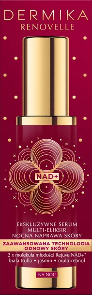 DERMIKA RENOVELLE EKSKLUZYWNE SERUM MULTI-ELIKSIR NOCNA NAPRAWA SKÓRY to skoncentrowana dawka luksusu i zaawansowanej pielęgnacji dla skóry dojrzałej, również wrażliwej.