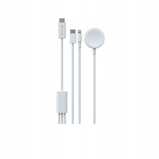 Devia kabel 3w1 Smart EA520 USB-C - USB-C + Lightning biały z ładowarką indukcyjną magnetyczną do Apple Watch