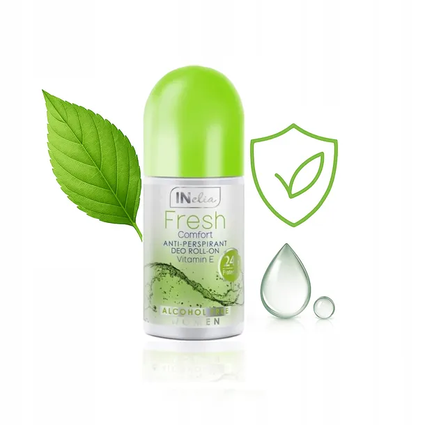 Poznaj INELIA Roll-on Fresh – skuteczny antyperspirant w kulce dla kobiet, które cenią sobie komfort, świeżość i delikatną pielęgnację skóry. Jego bezalkoholowa formuła z witaminą E nie tylko chroni przed potem i zapachem, ale też dba o Twoją skórę – bez podrażnień i bez śladów na ubraniach!