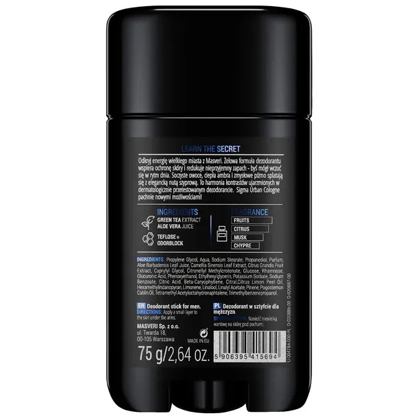 - Dezodorant w sztyfcie męski Masveri Urban Cologne świeży zapach 75 g