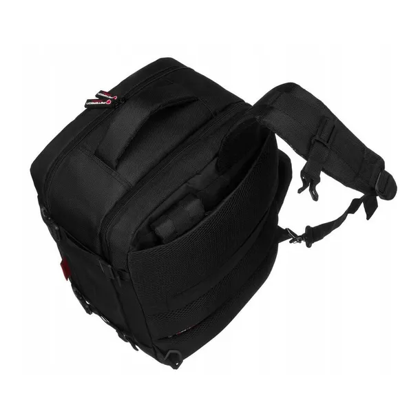 Plecak posiada dodatkowe pasy boczne z zapięciem typu FASTEX wykonane z mocnego tworzywa ABS.