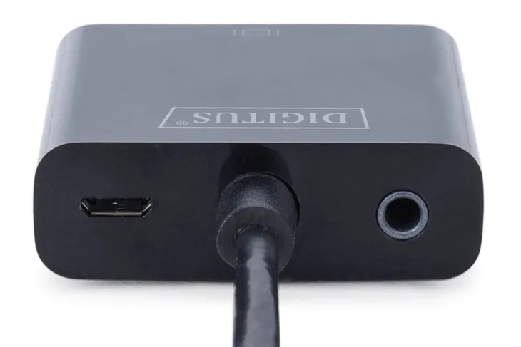 DIGITUS DA-70461 konwertuje sygnały HDMI na analogowe sygnały VGA. Dzięki temu można połączyć nowoczesne urządzenia odtwarzające, takie jak notebooki, odtwarzacze Blue Ray, odtwarzacze DVD, konsole do gry itd., ze starszymi ekranami VGA lub rzutnikami komputerowymi VGA. Konwerter posiada dodatkowo gniazdo audio mini jack 3,5 mm. Dzięki temu następuje równoczesna konwersja ewentualnego sygnału audio. Umożliwia to dodatkowe odtwarzanie audio po podłączeniu głośników lub systemu surround.