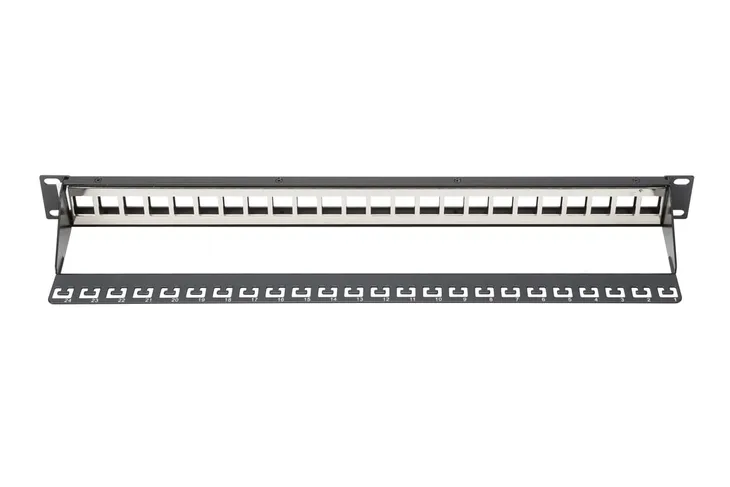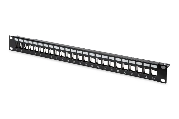 ✔️ Digitus Panel krosowy (patch panel) modularny 19" 24x keystone, ekranowany, 1U, czarny, prowadnica kabli, pola opisowe ✔️