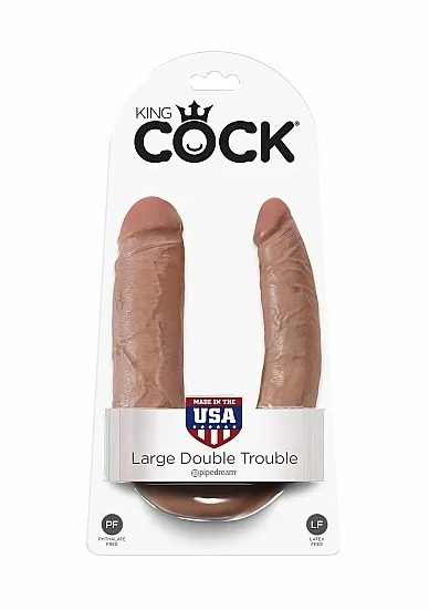 King Cock U-Shaped Large Double Trouble to innowacyjne dildo podwójne, które zapewnia niezwykle realistyczne doznania dzięki swojej budowie. Wzmocniony rdzeń i miękka powierzchnia oferują autentyczne wrażenie dotyku.Perfekcyjnie odwzorowane tekstury skóry dostarczają intensywnych przeżyć, jakby były prawdziwe. Dzięki materiałowi TPE, produkt jest całkowicie bezpieczny dla ciała.