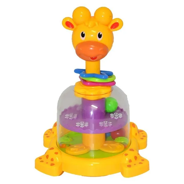 - Ta interaktywna zabawka dedykowana jest najmłodszym odkrywcom świata. Dzięki intensywnym kolorom, ciekawym kształtom i ruchomym elementom, maluchy są zachęcone do eksploracji. Po wciśnięciu głowy żyrafy, elementy zaczynają wirować, podbijając piłeczki wewnątrz zabawki. Zabawa stymuluje zmysł dotyku oraz rozwija zdolności motoryczne dziecka. Wymiary zabawki wynoszą 24 x 17 x 14 cm, a pudełka 26 x 7 x 15 cm. Zalecany wiek: 0+.