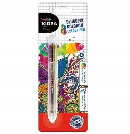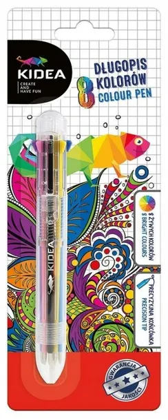 Długopis z wkładami w ośmiu intensywnych kolorach: czarnym, niebieskim, zielonym, brązowy, czerwonym, fioletowym, różowy i żółtym. Jego precyzyjna końcówka ułatwia pisanie, kolorowanie kolorowanek kreatywnych oraz wyróżnienie odpowiednich fragmentów tekstu podczas sporządzania notatek.