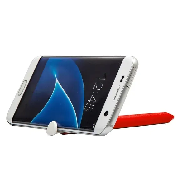Plastikowy długopis z oparciem na telefon komórkowy. Posiada obrotowy mechanizm włączania i niebieski wkład. Telefon nie jest dołączony.