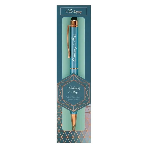 Wyjątkowy długopis prezentowy z napisem (dedykacja widoczna na zdjęciu) to doskonały sposób na okazanie wdzięczności i podarowanie praktycznego upominku. Klasyczny design w pastelowych odcieniach, wraz z subtelnym napisem sprawia, że produkt wyróżnia się elegancją i ponadczasowym stylem. Długopis wyposażony jest w funkcjonalną końcówkę typu touch pen, umożliwiającą wygodne korzystanie z urządzeń z ekranem dotykowym, co czyni go praktycznym na co dzień. Wkład w kolorze niebieskim można łatwo wymienić, dzięki czemu długopis posłuży przez długi czas. Całość zapakowana jest w eleganckie pudełko prezentowe, gotowe do wręczenia. Specyfikacja produktu: Napis: (widoczny na zdjęciu); Funkcjonalność: końcówka typu touch pen do ekranów dotykowych; Kolor wkładu: niebieski (wymienny); Opakowanie: eleganckie pudełko prezentowe; Materiał: metal