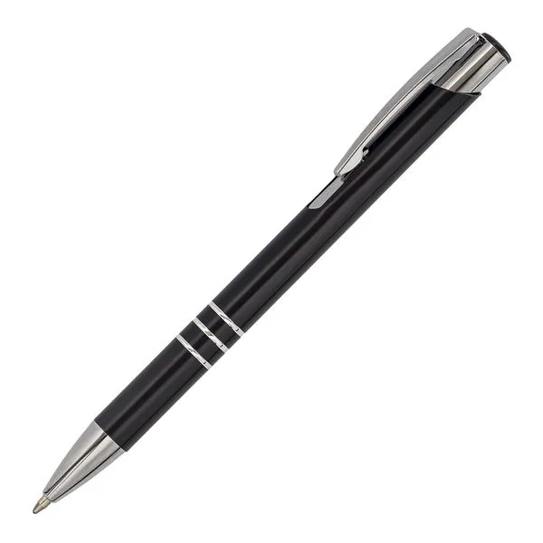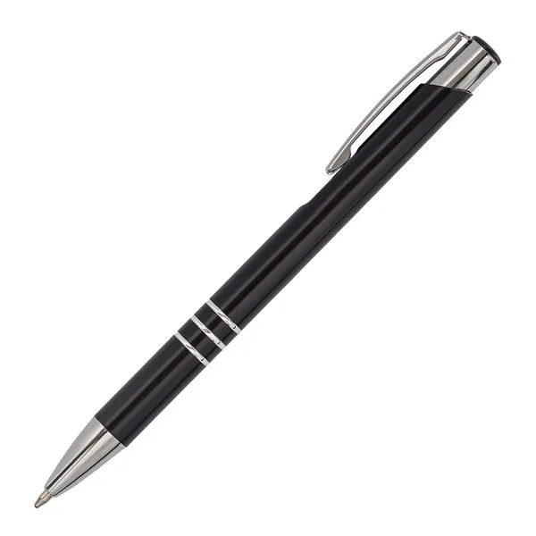 Długopis aluminiowy. Wyposażony w niebieski wkład.