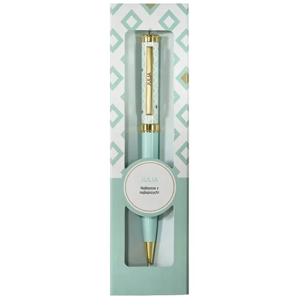 Elegancki długopis prezentowy w pudełku. Długopis zachwyca oryginalnym wzorem i nowoczesnym designem. Wyposażony w niebieski, wymienny wkład, będzie praktycznym i stylowym dodatkiem. To idealny prezent dla bliskiej Ci osoby! SPECYFIKACJA DŁUGOPISU: Personalizowany grawer (widoczny na zdjęciu); ciekawy wzór i design; pastelowa kolorystyka; materiał - metal; eleganckie opakowanie; wymienny wkład w kolorze niebieskim.