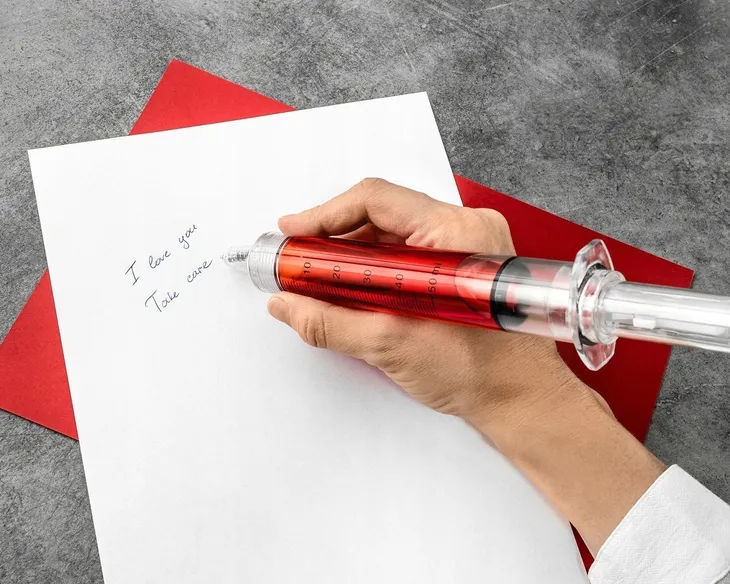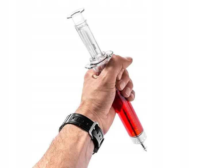 - długopis świetna imitacja strzykawki z krwią teraz w rozmiarze XXL