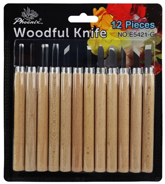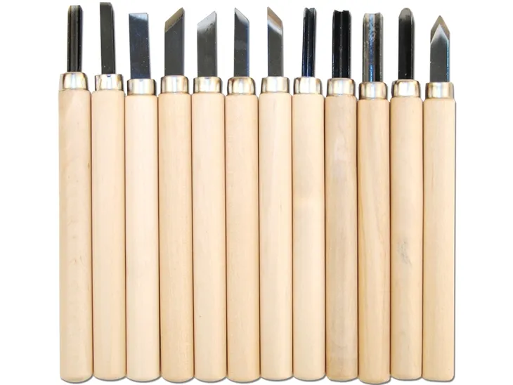 - W zestawie 12 sztuk rylców o różnych ostrzach.
