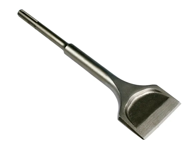 Dłuto łopatkowe SDS max ma samoostrzącą się krawędź tnącą, która usuwa materiał o 30% szybciej niż standardowe dłuta.