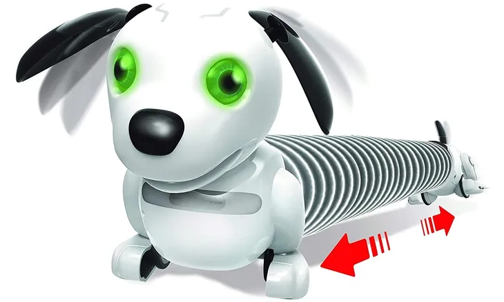 Interaktywny pies sterowany gestami, który bez wątpienia będzie najlepszym przyjacielem i towarzyszem Twojego dziecka! Wyposażony w pilot SmartBall do automatycznego sterowania. Korpus zabawki można rozciągnąć do 26 cm długości, o 70% dłużej niż jego rzeczywista długość ciała. Ponadto posiada czujnik dotykowy. Użyj sterowania gestami, obracając ręką w lewo lub w prawo. Czujniki umożliwiają reagowanie na światło i efekty dźwiękowe za pomocą świecących oczu LED.
