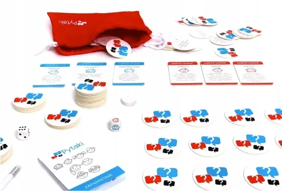 Gracze siadają razem i losują z woreczka „PYTAKI” czyli żetony, a następnie odpowiadają na wylosowane pytanie lub wykonują zadanie.