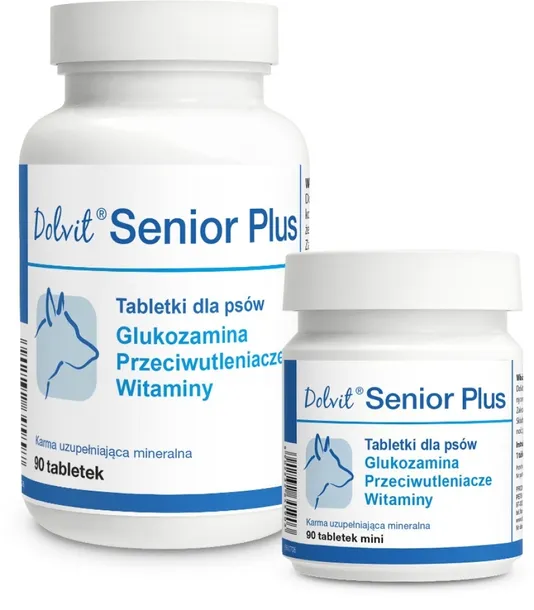 Dolvit Senior Plus to preparat witaminowy z glukozaminą, wzbogacony o naturalne substancje: żeń-szeń, żurawina, tokoferole, kapsaicyna. Zalecany dla psów starszych, a także w okresach rekonwalescencji. Składniki preparatu poprawiają ogólną kondycję, wzmacniają odporność, pomagają utrzymać witalność i zdrowie zwierząt. Dojrzewanie i starzenie się to naturalne procesy, które nie ominą nikogo, nawet naszego ukochanego psa. Jedyne, co możemy zrobić, to wspierać jego organizm, by mimo podeszłego wieku był w dobrej kondycji i zdrowiu. Pomóc w tym może Dolvit Senior, czyli tabletki z glukozaminą, witaminami, minerałami i antyoksydantami.