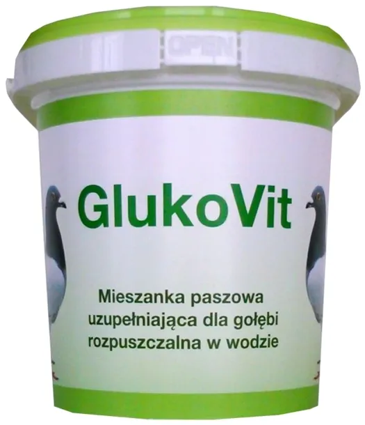 GlukoVit jest to rozpuszczalna w wodzie mieszanka uzupełniająca dla gołębi zawierająca glukozę, zestaw witamin z grupy B i witaminę C. Zawarta w mieszance glukoza stanowi źródło łatwo przyswajalnego cukru. Olbrzymi wysiłek ponoszony przez gołębia pocztowego w czasie lotu powoduje, że dostarczenie substancji energetycznych ma wpływ na usuwanie skutków zmęczenia.Skład