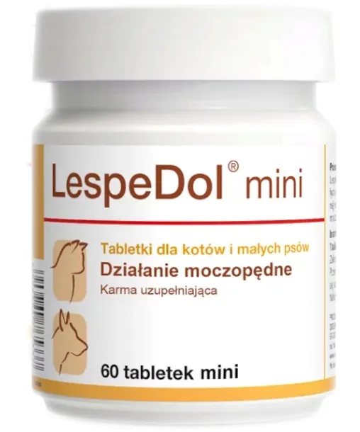 Działają moczopędnie. Tabletki dla kotów i małych psów. LespeDol mini zawiera naturalne składniki wykazujące działanie moczopędne, które sprzyjają oczyszczaniu organizmu z toksyn i produktów przemiany materii.
