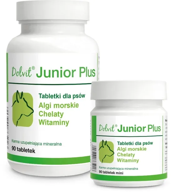 Tabletki dla szczeniąt i młodych psów. Karma uzupełniająca mineralna. Dolvit Junior Plus mini to preparat witaminowo-mineralny zalecany do stosowania przez cały okres wzrostu szczeniąt, począwszy od 3 tygodnia życia.