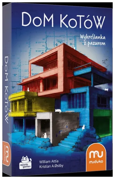 Zapełnij swój dom kotami i myszami! Twórz pokoje z liczb za pomocą kości, a następnie korzystaj ze specjalnych zdolności, by zdobyć jak najwięcej punktów. Dzięki czterem unikalnym poziomom i losowym kombinacjom zdolności, otrzymujesz prawie nieskończoną regrywalność i nowe wyzwanie w każdej partii!W każdej turze jeden z graczy rzuca kośćmi, następnie wszyscy wybierają najkorzystniejsze z nich i zapisują wyniki na swoim arkuszu. Podczas gry będzie starać się grupować takie same wartości aby domykać pokoje. Ich wielkości muszą być takie same, jak wartości, która je tworzą (czyli dwie dwójki, trzy trójki, cztery czwórki lub pięć piątek). Celem gry jest zdobycie jak największej liczby punktów, które otrzymuje się za: domknięte pokoje, koty i myszy na swoim kotów to szybka, sprytna gra kościana typu roll & write, stworzona przez nagradzanych projektantów gier: Kristiana A. Otsbyego i Williama Attię.