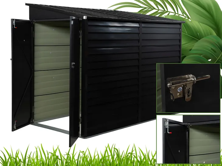 - Możliwość zamknięcia na kłódkę i rygiel (brak w zestawie) – pełne bezpieczeństwo przechowywanych przedmiotów.