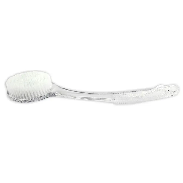 Szczotka do mycia ciała na długiej rączce idealna podczas codziennej pielęgnacji. Doskonale masuje ciało, usuwa martwy naskórek i pomaga w walce z cellulitem. Dzięki odpowiednio wyprofilowanej rączce umożliwia umycie trudno dostępnych części ciała.Wymiar:długość 34 cm