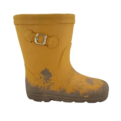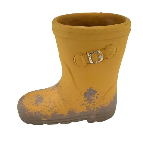 Wprowadź odrobinę humoru i stylu do swojego ogrodu, tarasu lub wnętrza dzięki tej oryginalnej osłonce w kształcie ubłoconego kalosza! Ręcznie wykonana z betonu, w energetycznym żółtym kolorze, idealnie sprawdzi się jako wyjątkowa dekoracja oraz funkcjonalna osłonka na rośliny.