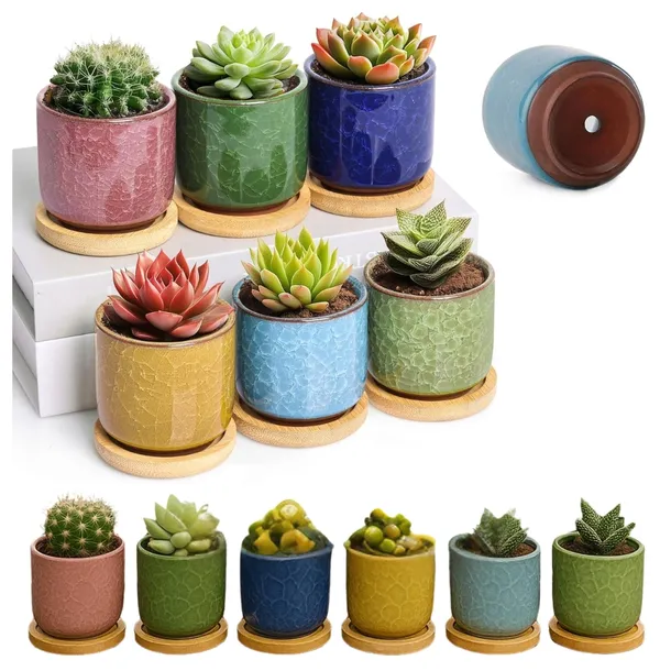 6.3cm ceramiczne doniczki na sukulenty kaktusy doniczki mini doniczki ICE Crack wyższa seria 6 zestaw kolorów ze spodkiem