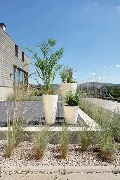 Ten wyjątkowy design znakomicie prezentuje się w nowoczesnych wnętrzach, a ponadto doniczka może być także wykorzystana jako element dekoracyjny tarasu, ogrodu lub balkonu, ponieważ jest odporna na warunki atmosferyczne takie jak deszcz, mróz oraz deszcz.