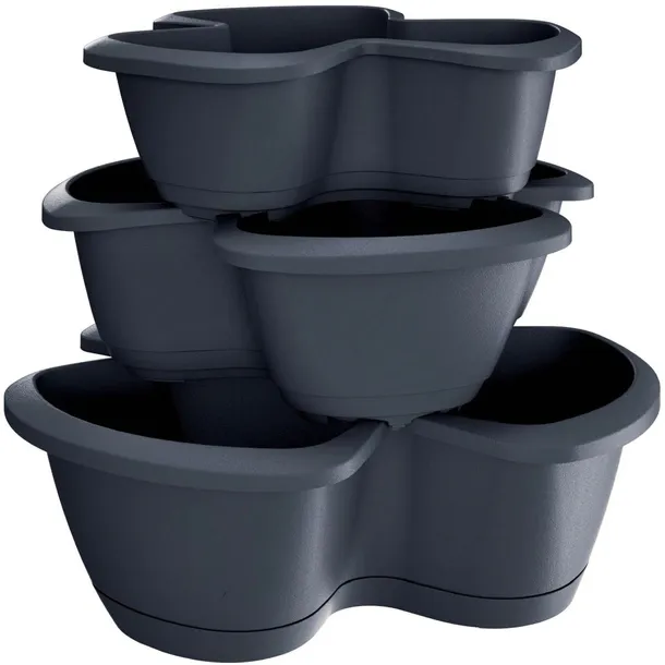 - Zestaw składa się z 4 części: 3 doniczki, 1 podstawa