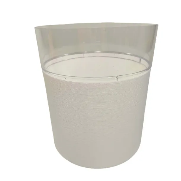 Doniczka z tworzywa sztucznego z nakładaną, plastikową osłoną.