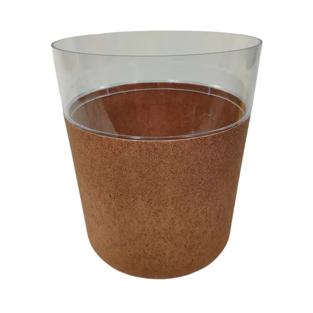 Doniczka z tworzywa sztucznego z nakładaną, plastikową osłoną.