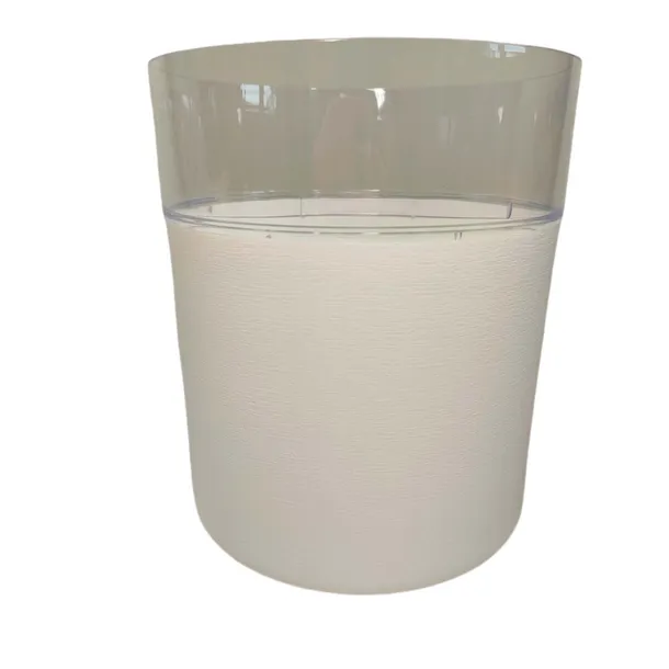 Doniczka z tworzywa sztucznego z nakładaną, plastikową osłoną.