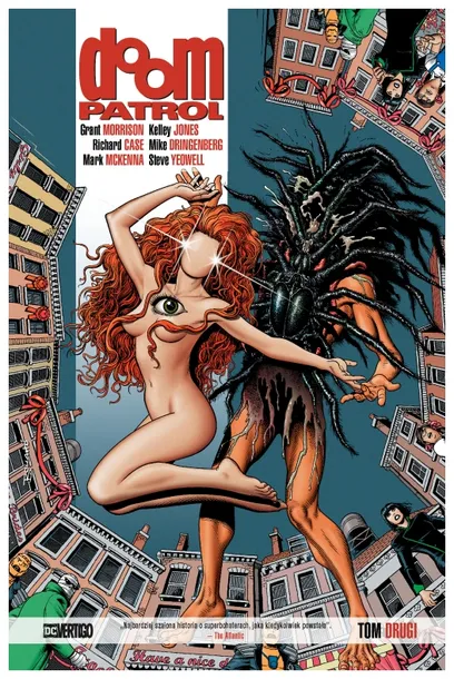 Drugi tom przygód Najdziwniejszych Bohaterów Świata znanych jako Doom ę dziwolągów obdarzonych supermocami wymyślili w latach sześćdziesiątych XX wieku scenarzysta Arnold Drake i rysownik Bruno Premiani. W latach dziewięćdziesiątych pisanie scenariuszy do serii zaproponowano Grantowi Morrisonowi. Scenarzysta tak opowiadał o swoich bohaterach: Profesor Niles Caulder postanowił zebrać drużynę dziwolągów z supemocami, bo pragnął lepszego świata. Przeszukał okolicę i znalazł Cliffa Steele'a, Larry'ego Trainora i Ritę Farr, nie? Steele był kierowcą wyścigowym, który miał jakiś straszliwy wypadek. Jego ciała nie dało się naprawić, ale Caulder zdołał uratować jego mózg i umieścić go w ciele robota. Steele, ma się rozumieć, nie był zachwycony, ale co mógł zrobić? Ten drugi, Larry Trainor, był pilotem wojskowym, którego ciało nawiedzała tajemnicza istota pełna energii ła najróżniejsze dziwne moce, ale jej obecność w ciele Larry'ego spowodowała, że trzeba go było owinąć specjalnie przygotowanymi bandażami, by chronić innych przed emitowanym teraz przezeń promieniowaniem. Kolejny szczęściarz. A co Rity Farr, była hollywoodzką aktorką, która umiała zmieniać swój rozmiar, nawet nie przechodząc na dietę. Ta banda skurczybyków walczyła z przeróżnymi dziwnymi i nieprzyjemnymi zagrożeniami włącznie z Bractwem Zła zanim wylecieli w powietrze na jakiejś wyspie. Koniec historii, tak? Tyle że wszyscy przeżyli, oprócz biednej Rity, i Doom Patrol został trzytomowe wydanie obejmuje wszystkie zeszyty serii Doom Patrol, do których scenariusze napisał szkocki autor. Komiks dla dorosłych